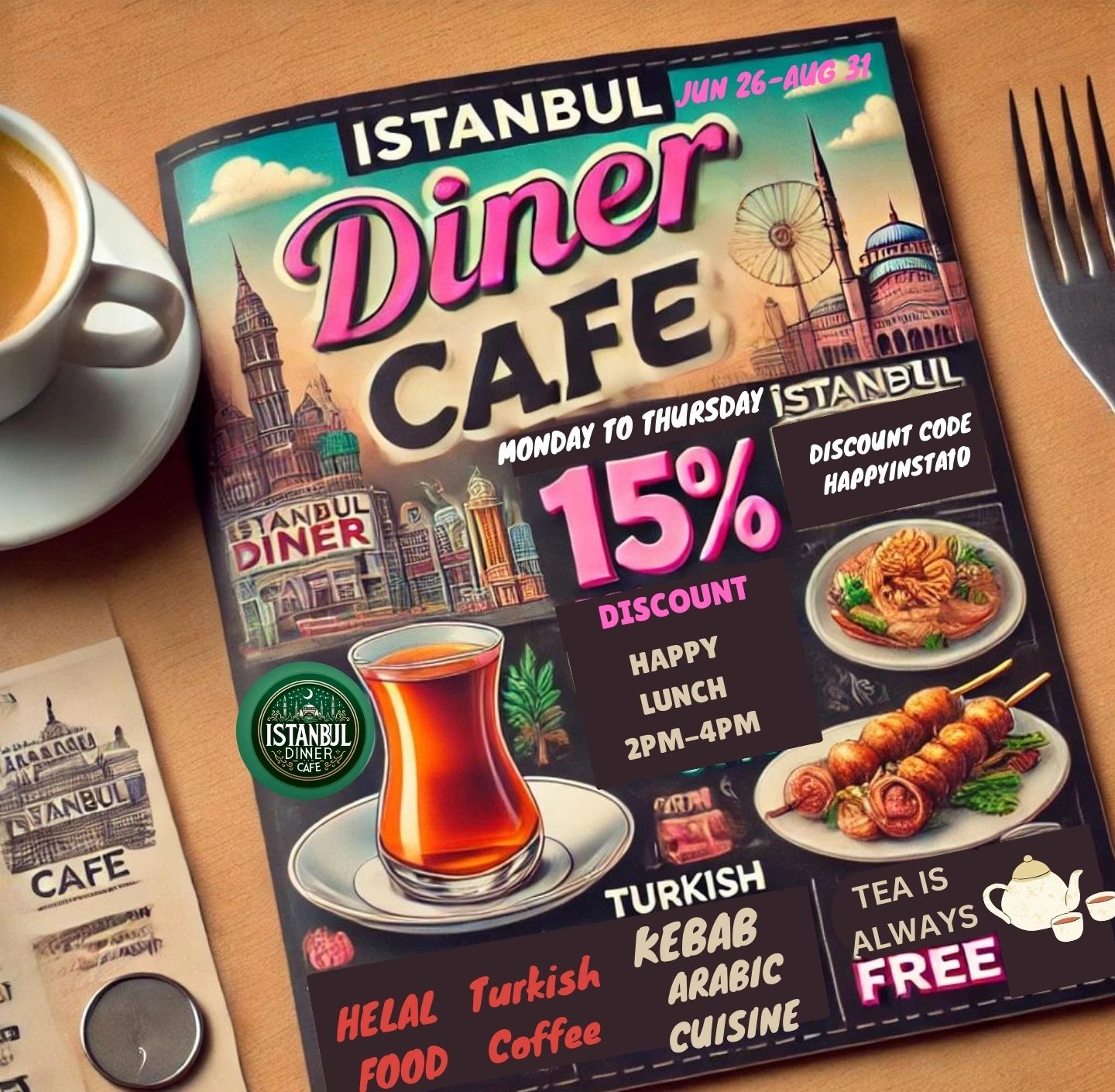 Savor the exotic spices and aromas of Türkiye at Istanbul Diner Cafe. If you are looking for a Turkish restaurant, a Middle Eastern restaurant or a Mediterranean restaurant in Revere, MA stop by and try one of our delicious menu items.